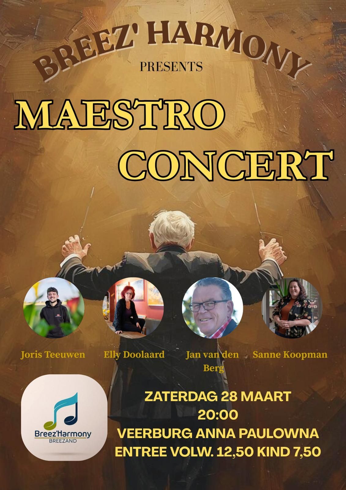 Breez’ Harmony is de muziekvereniging van Breezand en Anna Paulowna. Ze is ontstaan door het samenvoegen van Harmonie Concordia en Fanfare Soli Deo Gloria. Door de fusie, begin 2014, is er een groot orkest ontstaan van circa 35 muzikanten. Tevens hebben wij een enthousiast opstaporkest. Beide orkesten staan onder leiding van dirigent Bart Koning. U bent van harte welkom om te komen luisteren op een concert, om lid te worden, om muziekles te nemen of om een berichtje achter te laten op onze Facebook